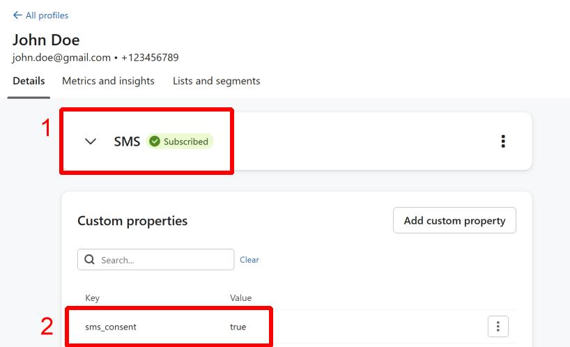 - The “sms_consent: true” custom property.