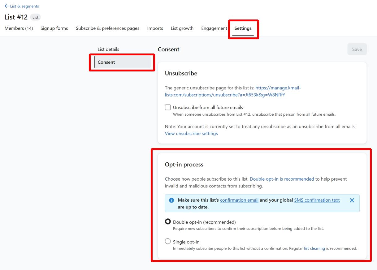 So, let’s assume that we’re collecting phone numbers in those countries. One important thing to check is your list’s opt-in setting.